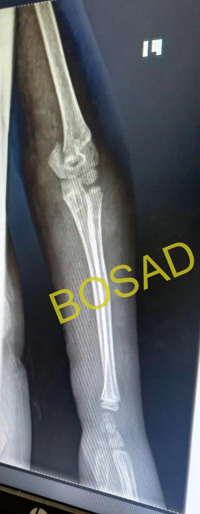An eight years old male patient came with the complaint of falling down accident from height. He has injured his left elbow area one week ago. For this complaint the family took him to traditional bone setter first, where massaged with Vaseline and tight bamboo splint was applied. When his left upper extremity starts to have blisters and swelling, his family brought him to our facility. On arrival he was stable but he had blisters and septic joint. x-ray and other investigations were performed and diagnosed with left supracondylar fracture plus left elbow septic joint. For this, surgical intervention was done and the infection was managed accordingly. Finally discharged with improvement